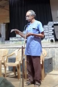 ಹೆಚ್. ಆರ್ ಸ್ವಾಮಿ ಮತ್ತು ಸುಧೀರ್ ಕುಮಾರ್ ಮುರೊಳ್ಳಿ ತುಂಬಾ ಚೆನ್ನಾಗಿ ನಡೆಸಿಕೊಟ್ಟರು. (ಅದರಲ್ಲಿ ಮೂರನೆಯವರಾಗಬೇಕಿದ್ದ ಸುಬ್ಬು ಹೊಲೆಯಾರ್ ಗೈರು ಹಾಜರಿಗೂ ‘ತುಮರಿ ಪರಿಣಾಮ’ವೇ ಕಾರಣವಿರಬಹುದು) ಮೂಲ ಯೋಜನೆಯಲ್ಲಿ, ಮೂವರೂ ಒಬ್ಬೊಬ್ಬ ಮಹಾತ್ಮರನ್ನು ವಹಿಸಿಕೊಂಡು, ತಮ್ಮ ಅನುಭವಗಳನ್ನು ವಿಸ್ತರಿಸುವುದಿತ್ತು. ಆದರೆ ಒಬ್ಬರ ಗೈರುಹಾಜರಿಯನ್ನು ನೆಪ ಮಾಡಿ, ಶಾಣ್ಯಾ ಸಂಯೋಜಕ ಸುರೇಶರು ವಿದ್ವಾಂಸರಿಬ್ಬರನ್ನೂ ಅನೌಪಚಾರಿಕತೆಗೆ ಎಳೆದರು. ನನ್ನ ಅಜ್ಞಾನದಿಂದ ಅದುವರೆಗೆ ನನಗೆ ಅಪರಿಚಿತರಾಗುಳಿದಿದ್ದ ಮಹಾತ್ಮ – ಹೆಚ್. ಆರ್. ಸ್ವಾಮಿಯವರನ್ನು, ನಿವೃತ್ತ ಪ್ರಾಂಶುಪಾಲ ಎಂದರೆ ಕೇವಲ ಹೊಟ್ಟೆಪಾಡಿನ ಮಾತಾದೀತು. ಹುಟ್ಟಿನ ಆಕಸ್ಮಿಕದಲ್ಲಿ ಹಿಂದುಳಿದ ಸಮುದಾಯವೊಂದರ ಸದಸ್ಯನಾದರೂ, ಪ್ರತಿಪಾದಿಸಿದ ವಿಚಾರ ಮತ್ತು ಸಮಾಜಕ್ಕೆ ತೆತ್ತುಕೊಂಡ ಪರಿಯಲ್ಲಿ ಮೌಲಿಕ ಶಿಖರವನ್ನೇ ಕಂಡು ನಮಗೂ ಉಣಿಸಿದರು – ಹೆಚ್. ಆರ್. ಸ್ವಾಮಿ. ಕಳೆದ ವರ್ಷ ಹೀಗೇ ಹಾಮ ಭಟ್ಟ ಸ್ಮೃತಿ ಕಲಾಪ ಮುಗಿಸಿ ಮರಳುವ ದಾರಿಯಲ್ಲಿ ತೀರಾ ಆಕಸ್ಮಿಕವಾಗಿ ನನ್ನ ಪರಿಚಿತವಲಯಕ್ಕೆ ಸಿಕ್ಕ ಸುಧೀರ್ ಕುಮಾರ್ ಮುರೊಳ್ಳಿ, ಕೊಪ್ಪ ವಲಯದ ಓರ್ವ ಉದ್ಯಮಿ, ರಾಜಕಾರಣಿ ಎಂದಷ್ಟೇ ತಿಳಿದುಕೊಂಡಿದ್ದೆ (ನನ್ನ ಅಜ್ಞಾನ). ಆದರೆ ಇಬ್ಬರೂ ಎಂಥಾ ಘನ ಘಟಗಳೆಂದು ಹಾಮ ಭಟ್ಟ ಸ್ಮೃತಿ ಕಲಾಪ ನಮಗೆಲ್ಲರಿಗೂ ಮನವರಿಕೆ ಮಾಡಿತ್ತು. ಕ್ಷಮಿಸಿ, ಅವರ ಭಾವಗಳನ್ನಷ್ಟೇ ನಾನು ಸ್ವಾಂಗೀಕರಿಸಿಕೊಂಡೆ. ಹಾಗೆಂದು ನನ್ನದೇ ಮಾತುಗಳಲ್ಲಿ ಹೇಳಲು ನಾನು ಅಸಮರ್ಥ.
