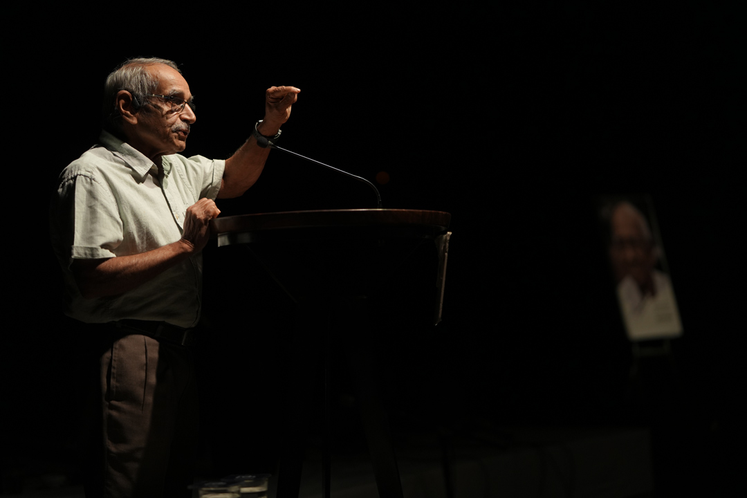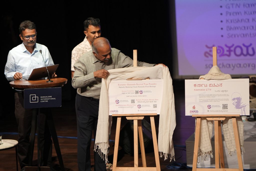ವೇದಿಕೆಯ ಕಲಾಪದ ಪೂರ್ವಾರ್ಧದಲ್ಲಿ ಎನ್ನೇಯಂ ಇಸ್ಮಾಯಿಲ್, ಏಕೈಕ ನಿರೂಪಕನಾಗಿ ಜಿಟಿನಾ ಸಂಕ್ಷಿಪ್ತ ಪರಿಚಯ ನೀಡಿದರು. ಜಿಟಿಎನ್ ಕೈಬರಹದ ಶೈಲಿಯನ್ನು ಗಣಕಕ್ಕೆ ಒಗ್ಗಿಸಿದ ಸಂಚಯದ (ಓಂ ಶಿವಪ್ರಕಾಶ್ ಬಳಗ) ಸಾಧನೆಯನ್ನು ಚುಟುಕದಲ್ಲಿ ವಿವರಿಸಿದರು. ಅದನ್ನು (ಜತೆಗೇ ವೆಸ್ಲಿ ಪ್ರೆಸ್ಸಿನ ಕನ್ನಡ ಶೈಲಿಯನ್ನೂ) ಕೆಎನ್ ಶಾಂತಕುಮಾರ್ ಲೋಕಾರ್ಪಣ ಮಾಡಿದರು. ಅವರು ಮೊದಲೇ ಘೋಷಿಸಿಕೊಂಡಂತೆ, ಸಭೆಗೆ ಮಾತಿನ ಹೊರೆ ಹೊರಿಸಲಿಲ್ಲ. ಆದರೆ ಇಸ್ಮಾಯಿಲ್ ಪ್ರಾಸಂಗಿಕವಾಗಿ, ಪ್ರಜಾವಾಣಿಯ ಲಿಪಿಯ ಆಯ್ಕೆಯಲ್ಲಿ ಶಾಂತಕುಮಾರರ ಮಹತ್ವವನ್ನು ಎತ್ತಿ ನುಡಿದದ್ದು ಮಹತ್ವದ್ದೇ ಆಗಿತ್ತು. ಅದಕ್ಕೆ ಹೆಚ್ಚುವರಿಯಾಗಿ ನನ್ನ ಒಂದು ಮಾತನ್ನು ಇಲ್ಲಿ ಸೇರಿಸಲೇ ಬೇಕು. ೧೯೬೫ರ ಹಿಂದು ಮುಂದಿನ ದಿನಗಳಲ್ಲಿ ಪ್ರಜಾವಾಣಿ ಬಳಗದ ಸುಧಾ ವಾರಪತ್ರಿಕೆಯ ಪ್ರಕಟಣೆ ಶುರುವಾಗಿತ್ತು. ಅದರ ಪ್ರಧಾನ ಸಂಪಾದಕರ (ಇ.ಆರ್ ಸೇತುರಾಂ ಮುಂದೆ ಎಂಬಿ ಸಿಂಗ್) ಪ್ರೇರಣೆಯಲ್ಲಿ, ತಂದೆ ತಿಂಗಳಿಗೊಂದರಂತೆ ಆಯಾ ತಿಂಗಳ ಆಕಾಶದ ‘ಜೀವಂತ’ ವಿವರಗಳನ್ನು ರೇಖಾಚಿತ್ರ ಸಹಿತ ಲೇಖಿಸುತ್ತಿದ್ದರು. ಇದು ಕೆಲ ವರ್ಷಗಳ ಕಾಲ ನಡೆದು, ತಂದೆಗೆ ತಾರಾಮೌಲ್ಯ ಕೊಟ್ಟದ್ದು ಪ್ರಜಾವಾಣಿ ಬಳಗವೇ ಎನ್ನುವುದು ಇಲ್ಲಿ ಸ್ಮರಣಾರ್ಹ.