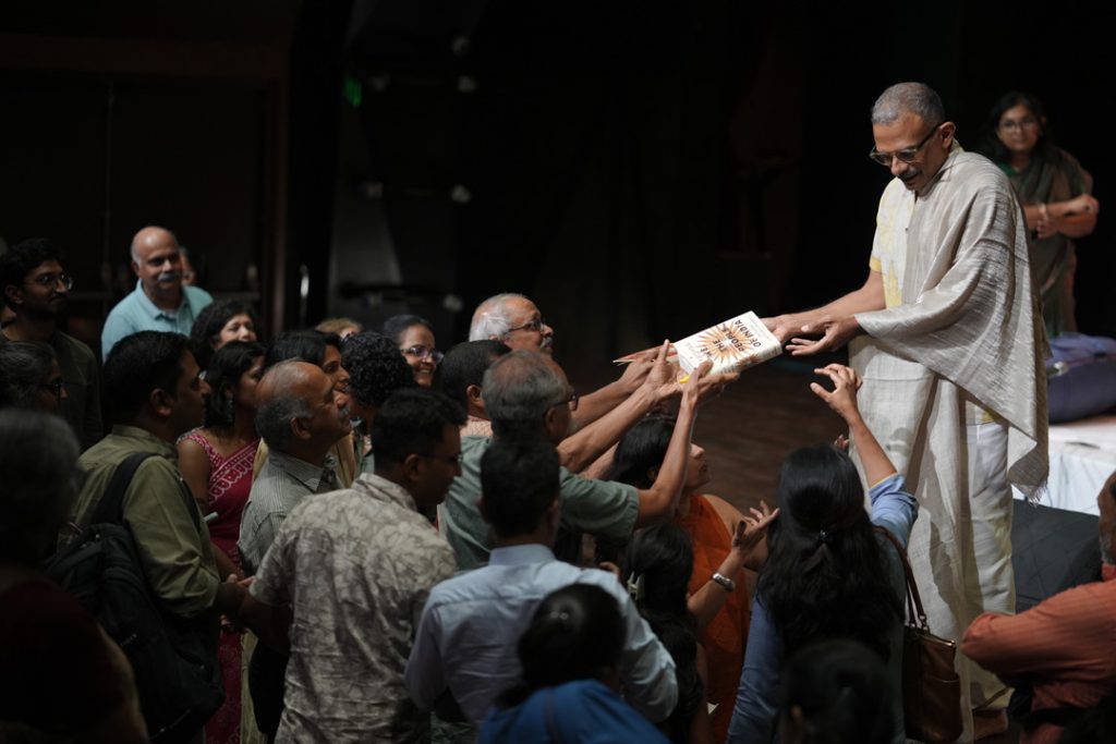 ಟೀಎಂಕೆ ತನ್ನ ಫೇಸ್ ಬುಕ್ ಗೋಡೆಯಲ್ಲಿ, ಸದಾ ತನ್ನ ಕಲಾಪಗಳ ಮುನ್ನೋಟ ಕೊಡುತ್ತಿರುತ್ತಾರೆ. ಹಾಗೆ ಅವರ ಏಪ್ರಿಲ್ಲಿನ ಪ್ರಕಟಣೆಯಲ್ಲಿ, ಜಿಟಿನಾ ಜನ್ಮ ಶತಾಬ್ದಿಯ ಸಂಗೀತ ಕಚೇರಿಯೇನೋ ಸರಿಯಾಗಿಯೇ ಬಂತು. ಜತೆಗೇ ಎರಡು ದಿನ ಮೊದಲು, ಅಂದರೆ ಏಪ್ರಿಲ್ ೧೬ರಂದು, ಗಯಟೆ ಇನ್ಸ್ಟಿಟ್ಯೂಟಿನಲ್ಲಿ, ಅವರದೇ ಹೊಸ ಪುಸ್ತಕ – ವಿ ದ ಪೀಪಲ್ ಸಂವಾದದ ನಮೂದೂ ಇತ್ತು. ಅಷ್ಟರೊಳಗೇ ಆ ಪುಸ್ತಕವನ್ನು ನಾನು ಕೊಂಡು ಬಹುತೇಕ ಓದಿದ್ದರಿಂದ, ಆ ಸಭೆಗೂ ಹೋಗಿದ್ದೆ.